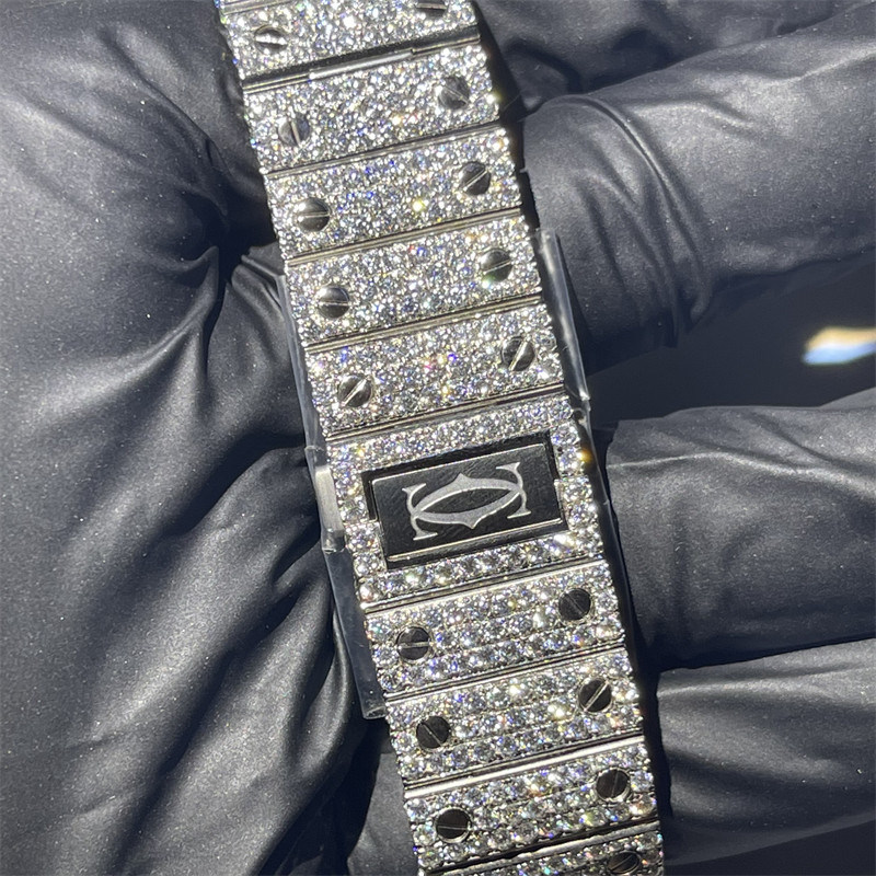 DEF VVS Moissanite a clouté la montre | Santos Iced Out Moissanite Watch | Full Bussdown Watch