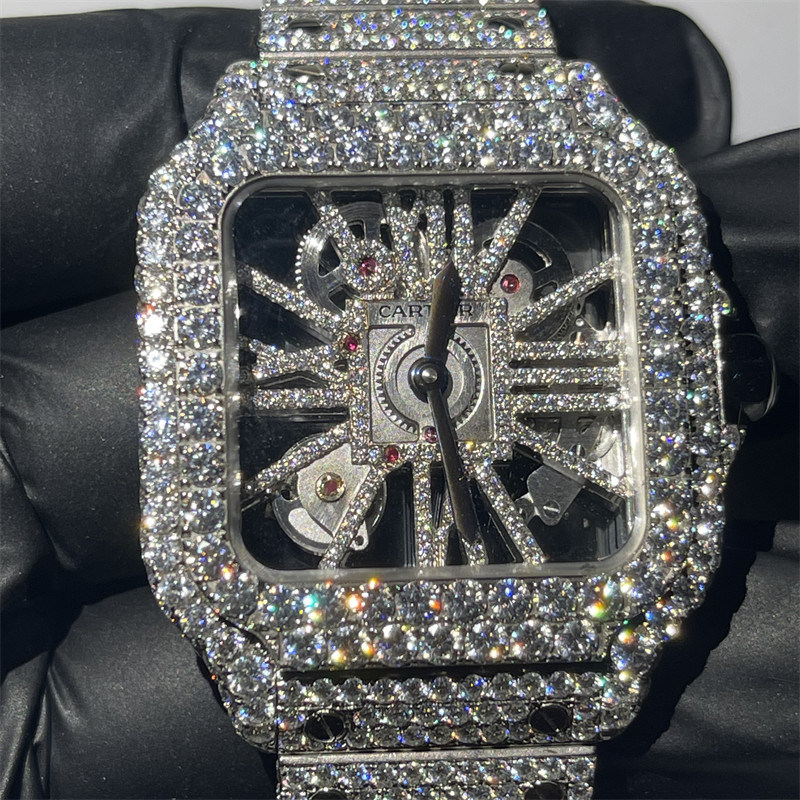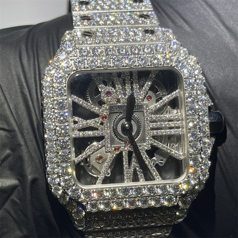 | Mettre en évidence: | Montre de DEF Moissanite,VVS a clouté la montre de Moissanite,Montre de Skeleton Iced Out Moissanite |