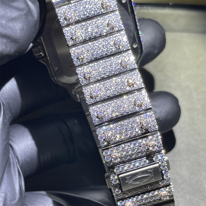 DEF VVS Moissanite a clouté la montre | Santos Iced Out Moissanite Watch | Full Bussdown Watch