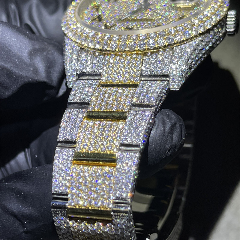 La montre de Moissanite glacée observent le plein buste de luxe en bas du moissanite de VVS observent bling automatique de mouvement supérieur de clone